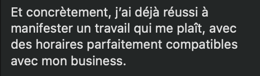 Que tu sois rationnelle ou spirituelle, ça fonctionne, parce que c’est une mécanique mentale avant tout.