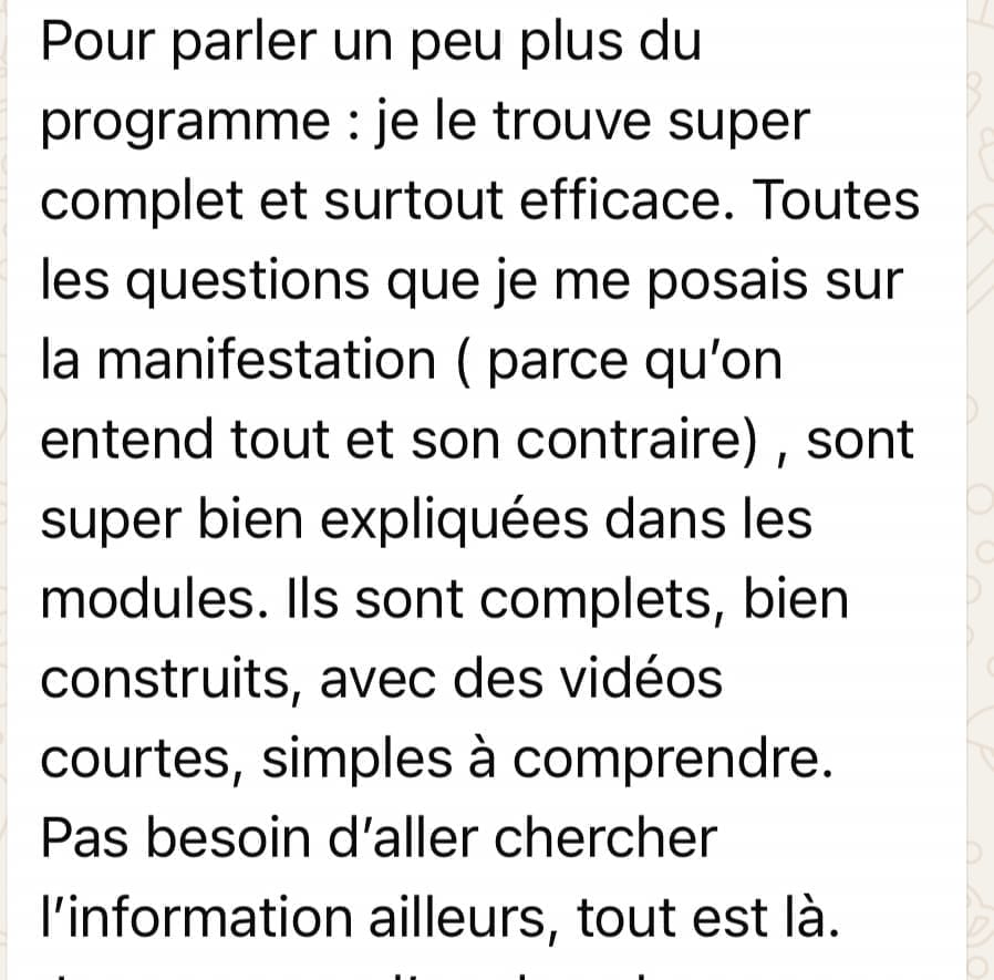 Tu peux avancer à ton rythme, revenir dessus quand tu en as besoin, et utiliser cette méthode pour manifester tout au long de ta vie.